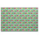Teal tennis fabric covered with peace signs, hearts, and tennis balls.