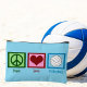 A pretty peace sign, heart, and a cute volleyball on a cute cosmetic bag gift. Pretty volleyball team presents.