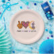 This playful Halloween paper plate features the phrase “Peace, Love, Witch” with three bold icons: a hand flashing the peace sign, a purple and orange chequered heart, and a witchy black cat curled inside a crescent moon. With vibrant colours and spooky-chic energy, it’s the perfect blend of retro fun and magical charm—ideal for witchy vibes all season long.