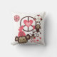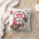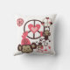 Peace Monkeys pillow features cute little brown monkeys swinging from and playing with peace symbols, hearts, and a monkey wearing a pink hat!