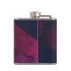 A christian themed flask. Designed with a sweet angel with yellow wings holding a shepherds crook. Sitting with white fluffy lambs. Navy blue and burgundy watercolor background, with tiny flecks of faux gold sparkle glitter (not actual glitter just a printed image). Text says: peace on earth and goodwill toward all.
