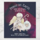 A christian themed wine bottle label. Designed with a sweet angel with yellow wings holding a shepherds crook. Sitting with white fluffy lambs. Navy blue and burgundy watercolor background, with tiny flecks of faux gold sparkle glitter (not actual glitter just a printed image). Personalize with your name. Text also says: peace on earth and goodwill towards all.