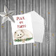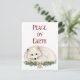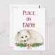 Beautiful holiday postcard features curled white Arctic fox with garland and bow and customizable "Peace on Earth" text.