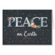 Peace on earth is written in the stars. Black background filled with stars sets off the word PEACE. Poinsettias and wreath swag decorate the main word. Beautiful and memorable card to send this Christmas!