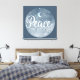Share your vision of world peach with this Peace on Earth Inspirational Moon & Night Sky Canvas Print. A soft, dark blue background complements modern text that says "Peace on Earth" A night time sky with stars and a crescent moon are featured in a circular shape. It's the perfect gift idea for Christmas gifts, Housewarming gifts, or birthday presents.