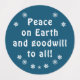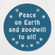 Sleek blue and white text label with snowflakes. Peace on Earth and goodwill to all. I feel it is the perfect message for today's environment. Subtly remind everyone. Professional looking, suitable for business gifts or personal use.
