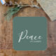 "Peace on earth" written in modern elegant typography on an evergreen pine tone background. Simple minimalist white script, Peace on earth. Great for holiday or Christmas packages and envelops. I have added this unique botanical design to other lovely personalized Christmas or holiday gifts in this collection.