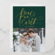 Peace On Earth Script Green and Gold Foil Holiday Card