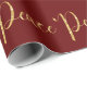 Beautiful ‘Peace” Gold wrapping paper for the holiday season on a beautiful deep red background. Gold script lettering sets the tone for elegance in this simple yet exquisite wrapping paper.