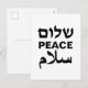 Peace Shalom Salaam white black typography Holiday Postcard