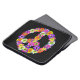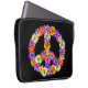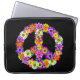 A floral peace sign in shades of pink, yellow, orange, purple, green, white and black.