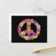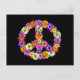 A floral peace sign in shades of pink, yellow, orange, purple, green, white and black.