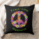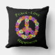 Peace Sign Floral Peace Love Happiness Throw Pillow