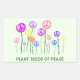A colourful design of peace symbol "flowers" growing in a garden, with the message, "Plant seeds of peace". If you want to help promote peace in the world display this as a gentle reminder for us all to act in ways that foment peace.