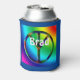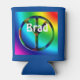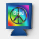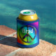 A graphic hippie peace sign design by artist/designer Charmaine Paulson on a can cooler.