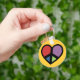 Peace sign in the shape of a heart with red, purple, green and blue shading on a yellow background.