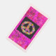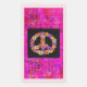 This paper guest towel has a floral peace sign in shades of pink, aqua, lavender yellow, orange, purple, green and black. On the top and bottom are bands of my abstract I call "Petals".