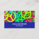 Business cards with a sixties vibe. Cool peace signs in bright and vibrant neon colours featuring all the colours of the rainbow.
