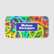 A name tag with a sixties vibe. Cool peace signs in bright and vibrant colours featuring all the colours of the rainbow.