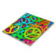 Ceramic tile with a sixties vibe. Cool peace signs in bright and vibrant colours featuring all the colours of the rainbow.
