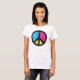 Groovy peace sign t-shirt. The peace sign is filled with blue, red, and yellow segments. Design is scratched for a groovy, vintage look. A cool peace t-shirt!