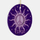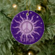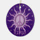 The sun and the symbol for peace celebrate your birth month in lavender, lilac, and purple with stars.
