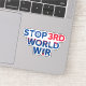 Create a visually striking sticker that features a dove carrying an olive branch, surrounded by bold, colourful text that reads "Advocating Peace to Prevent the Third World War." Incorporate symbols of unity, such as intertwined hands or a globe, to emphasize global solidarity. The design should evoke a sense of hope and urgency, reminding viewers of the importance of dialogue, understanding, and cooperation in fostering a peaceful world.