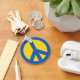 Peace Ukraine shows the internationally recognized peace symbol in the colours of the Ukranian flag.