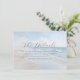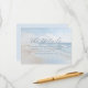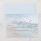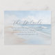 This wedding enclosure card features a serene beach scene with gentle waves and a soft blue sky, creating a tranquil seaside atmosphere. The minimalist design uses calming blues, whites, and light beige tones, enhanced by a dreamy, slightly blurred effect for an ethereal quality. Elegant script typography highlights "The Details," while straightforward sans-serif text provides information about accommodations and directs guests to the wedding website. The layout is balanced and modern, utilizing negative space effectively to guide attention smoothly from the title to the details, making it both visually appealing and informative.