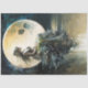 a moon goddess with a full moon behind her over the water
