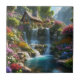 Peaceful mountain cabin waterfalls flowers tile