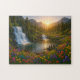 Peaceful Mountain Waterfall Puzzle with Sunrise