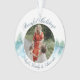 Peaceful Winter Forest Watercolor Script Christmas Holiday Photo Ornament. Watercolor drawing of trees in winter, winter forest with snow in blue and green colours. The design is peaceful and calm with text in elegant script. Customize with your photo and text.