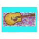 shows colourful acoustic guitar with yellow patina from original art ! also with "PeaceLove Guitar" slogan