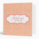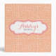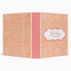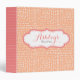 A cute and girly personalized recipe binder with a pretty coral pink, peach and white dot pattern design.