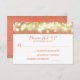 elegant wedding RSVP card with hanging string lights and glitter shimmer texture background (not actual glitter).