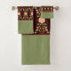 Peach And Green With Dark Brown Bath Towel Set