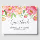 Peach and Pink Peony Flowers Grey Wedding Guest Book