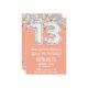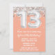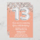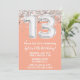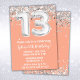 Peach silver and white 13th Birthday invitation 13 birthday party invitation for a black white silver with modern script writing and fun foil balloons.