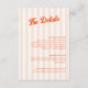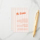 Introducing our exquisite peach and tangerine wedding details card, designed to add a touch of retro charm to your special day. The soft peach striped background is perfectly complemented by the vibrant tangerine classic calligraphy that adds a pop of colour and sophistication. The text is fully customizable.