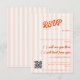 Introducing our fun peach and tangerine wedding RSVP card with a QR code, designed to add a touch of retro charm to your special day. Make it easy for your guests to reply by offering two RSVP options on one card. The soft peach striped background is perfectly complemented by the vibrant tangerine retro calligraphy that adds a pop of colour and sophistication. The text is fully customizable.