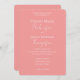 On a solid peach background, this wedding invitation consists of an elegant yet minimalist theme. The contemporary script font, sits in the middle of the invitation, while a sans serif text makes up the rest of the invite. The back of the card is a peach blank background.