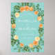 Peach Aqua Teal Wedding Roses Floral Poster