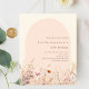 An elegant wildflower invitation. A cream, beige coloured background and a peach coloured arch. Decorated with watercolored wildflowers in beige, pink.