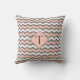 Peach, Black & White Chevron, Custom Monogram Throw Pillow