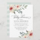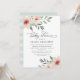 Elegant and delicate, our Peach Blossom baby shower invitation features watercolor flowers in muted shades of peach, blush pink and sage green at the corners, framing your baby shower details in classic off-black lettering. Cards reverse to subtle sage green tone-on-tone stripes. A beautiful choice for spring or summer baby showers in garden or outdoor settings for baby girls on the way.