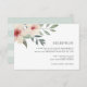 Elegant floral wedding reception card in muted tones of pink, peach and sage green features a watercolor floral peach blossom bouquet at the upper left corner, with your reception details in classic off black lettering. Personalize with your wedding reception details including timing, venue, address and any additional information like transportation or parking.