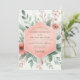 Soft watercolor blossoms in shades of peach and blush mingle with muted green foliage. This delicate design evokes a romantic, airy feel. The subtle artwork suggests a gentle, natural theme for your special day.