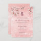 Oriental peach blossom / plum blossom, spring flowers in shades of pink with a double happiness symbol in calligraphy on a soft watercolor background 'tea ceremony' chinese wedding enclosure / details card. An elegant and romantic asian themed wedding design which is whimsical, modern and classy.