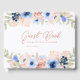 Modern, peach, blue, blush, flowers, handwriting, wedding guest book.